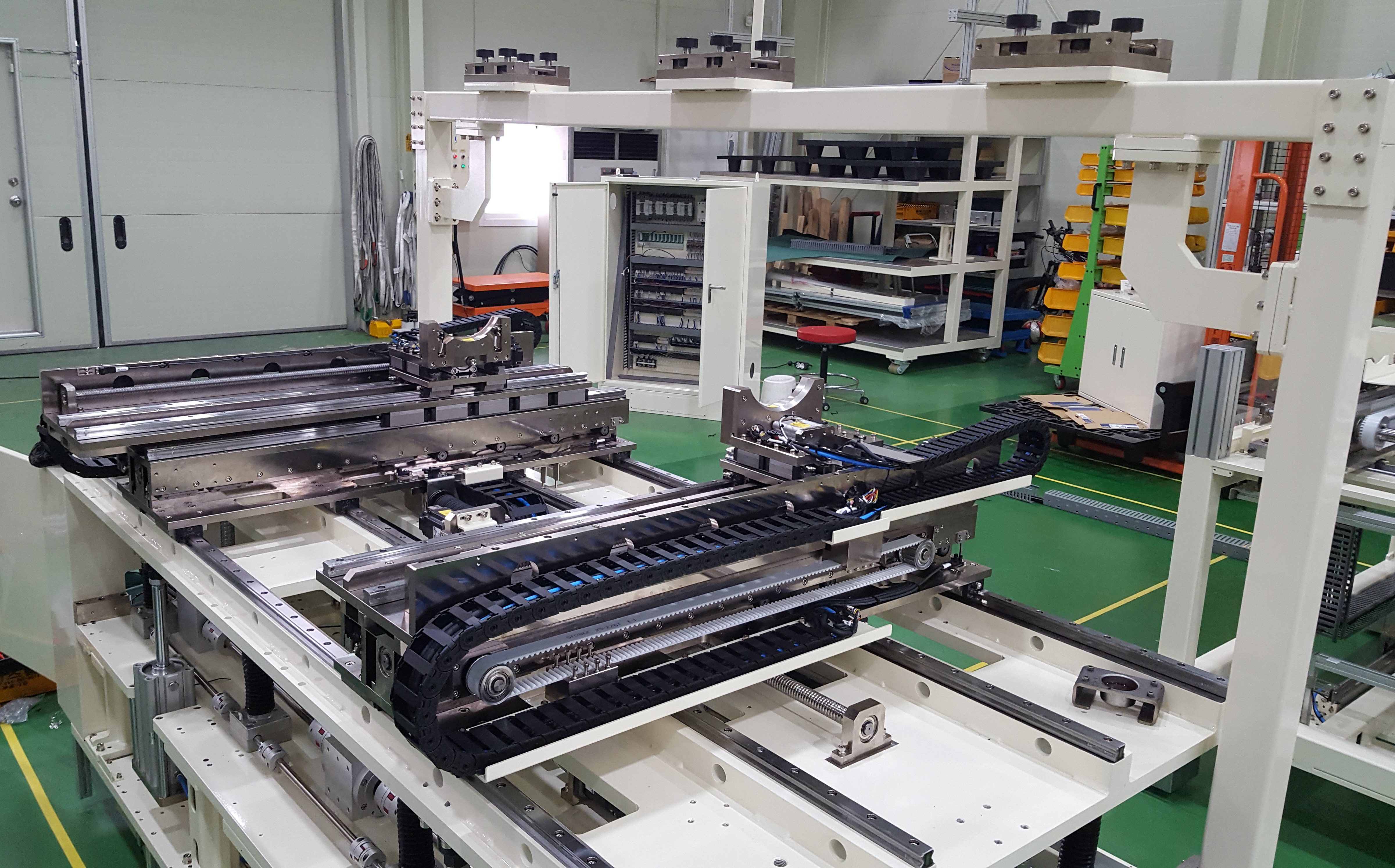 | 장비 개요 | 2차 전지 분리막 코팅공정 배출부 터렛장비에서 원단을 배출하는 장비. |